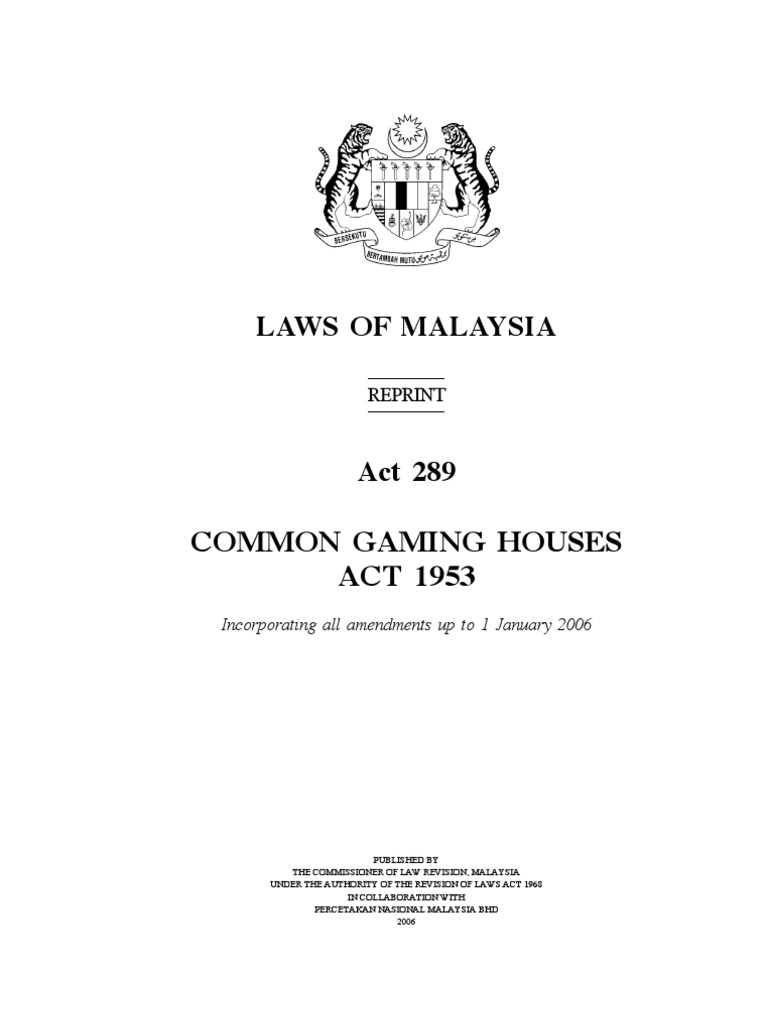 Akta Rumah Judi Terbuka 1953 Act 289 Pdf Document